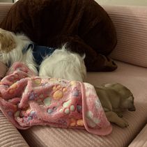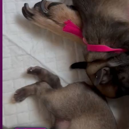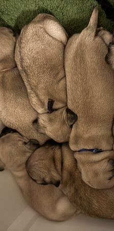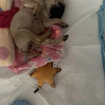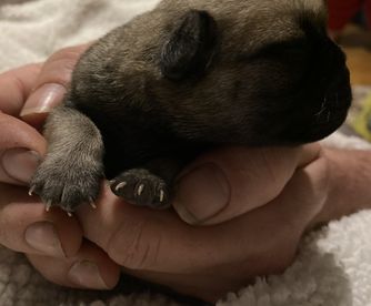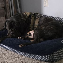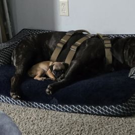Omg Pig has just been the best part of our life. You would think that our Cane Corso was his mom. They are always cuddled up and he is such a rascal!! Thank you so much!! We love him and his outgoing personality!!! He fits right in with our brood.