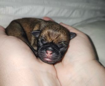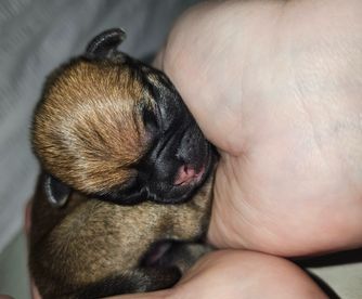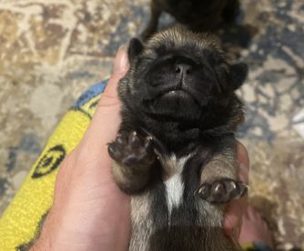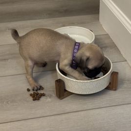My puppy, Dolly is playful, sweet and is a good snuggler. She eats well and gets along well with all family and neighbors. I am beyond happy that I have her as my companion!