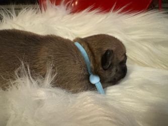 Penny is a beautiful apricot (fawn) female. She is the sweetest and quiet girl. She loves to be in your lap at all times. She is a great mom. She is highly intelligent.