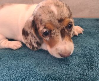 Finn is an AKC health-tested dachshund who is the perfect mix of charm, intelligence, and loyalty. I made sure to choose a well-bred dog with verified health clearances to ensure genetic soundness and overall well-being. My dachshund has a great temperament, a sleek and well-proportioned build, and a playful yet affectionate personality. Whether as a loving companion or a potential show prospect, my pup stands out for both quality and character.