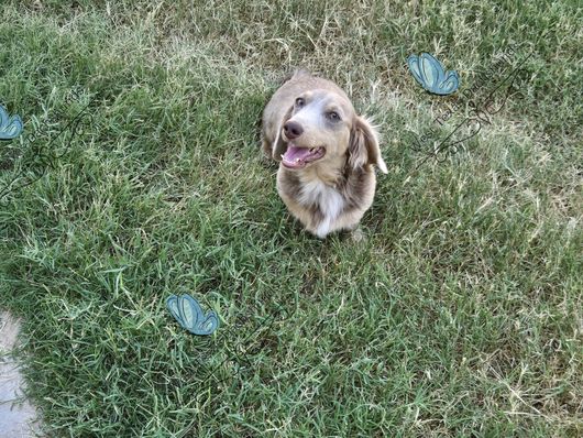Pebbles is a sweet little dachshund with a heart full of love and a tail that never stops wagging. Always ready for cuddles, playtime, and endless affection.