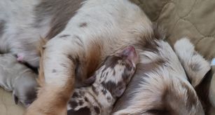 Dachshund puppies include smooth and longhaired coat varieties. Coat types may vary depending on the parent dogs.