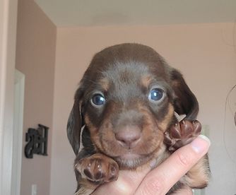 Dachshund puppies include red, chocolate, brindle, chocolate and tan, blue and tan, chocolate and cream, fawn (isabella) and tan, black and tan, black and cream, and dapple. Colors will vary depending on the parent dogs.