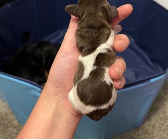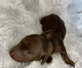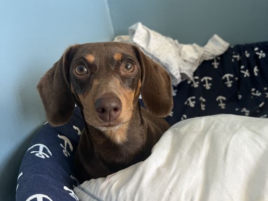 Riv is a female Dachshund. Carefully selected as a great representative of her breed, Jordyn decided to make her part of their program. Jordyn has passed Good Dog’s screening process, which involved a review of their breeding practices, environment, and the mental and physical health of their dogs.