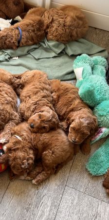 Our puppies include caramel, caramel red, red, and apricot. Colors will vary depending on the parent dogs.