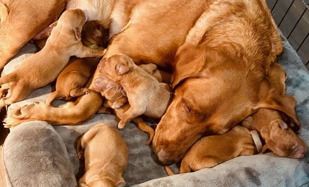 Healthy pups is of utmost importance to us- and why we started breeding in the first place! Our dogs go through extensive genetic testing, OFA hips, elbows, eyes and cardiac certifications and following bred expectations set forth by AKC. Your pup is an investment- and having to pay for expensive vet bills for preventable health conditions is just not ok!