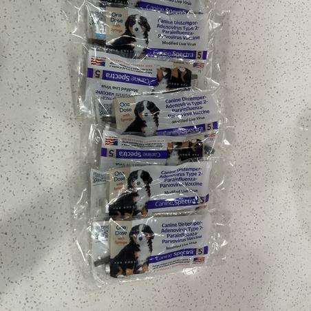 Puppies will be getting their first round of shots tomorrow when they turn 6 weeks. Picture of what I use for your records!