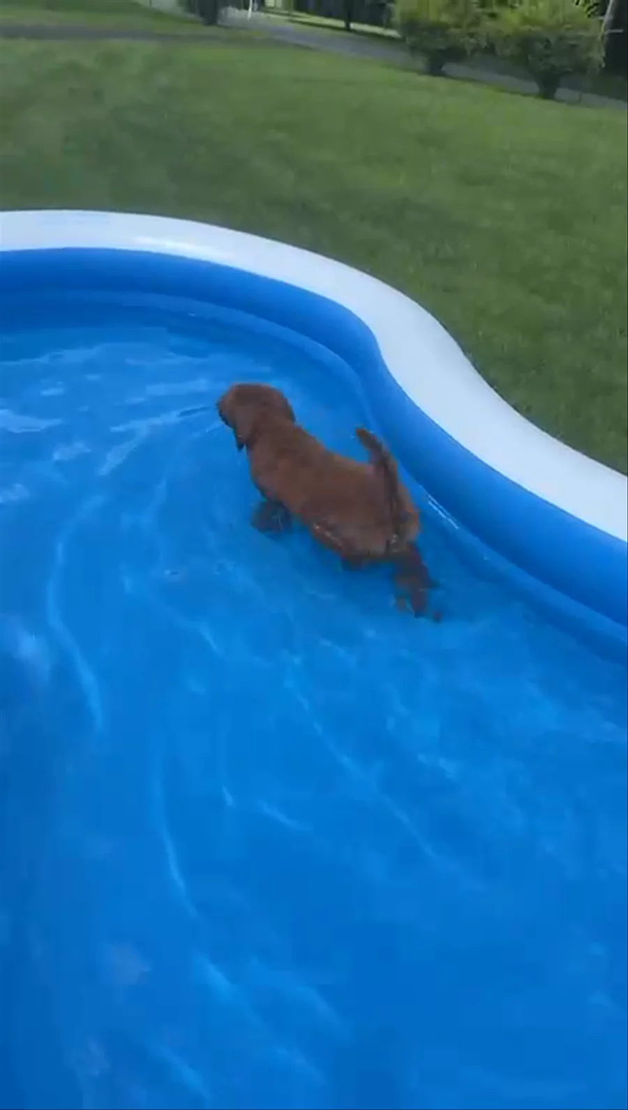 Our Nester is keeping cool in this heat! He's been Water Baybay from birth. His new family loves him.