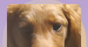 Blonde with hazel eyes, sweet disposition, quite a personality, fun-loving boy. Great with other dogs and kids.