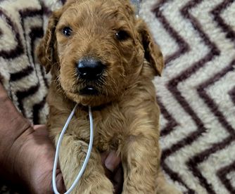 Milo Blu is a 3 month old Goldendoodle. He enjoys playing with his two friends, Sav & Windsor, he is very intelligent, obedient, and extremely loving. He would be a welcomed addition to any family. He would be a great tag along furry friend to join you on shopping trips, walks in the park, or staying home relaxing. He is great with kids and gets along well with other dogs.