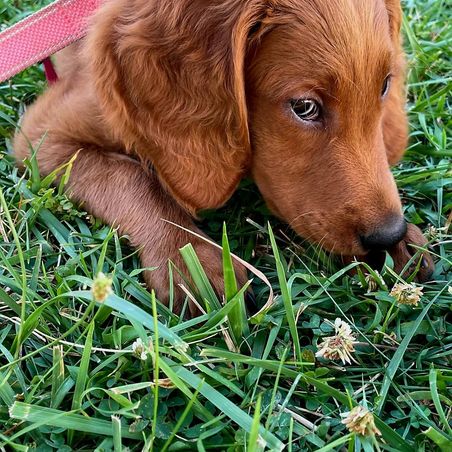 Trelawny Rose, a red unfurnished straight hair ball of love. She is a sweetheart, rarely barks unless it's time to eat. She's smart and responds to basic commands. Fully vaccinated, potty/crate trained, microchipped, and registered with American Canine Association.