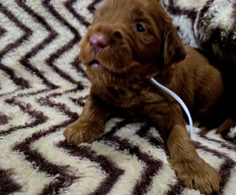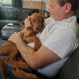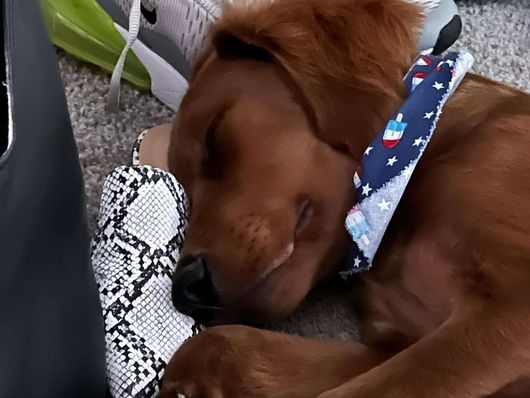 We are so happy with our boy, Chance! Once he adjusted, he quickly became the best part of our days. His flat coat is easy to maintain, and while he does shed a little, it’s a small trade-off for such a wonderful dog. We constantly get compliments on his sweet temperament, good manners, and how handsome he is. We’re so thankful to Westmore Land Island Pups for bringing him into our lives.