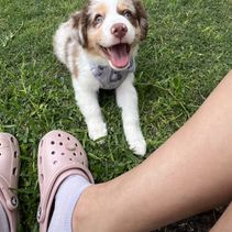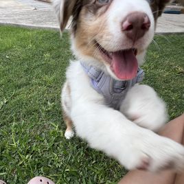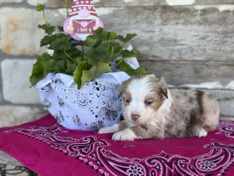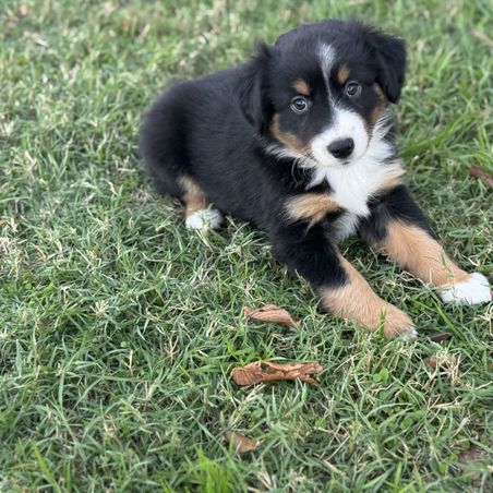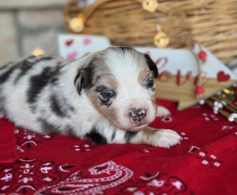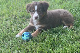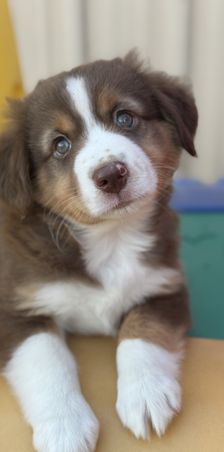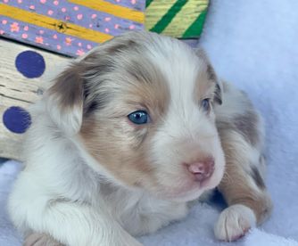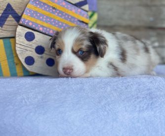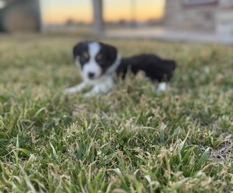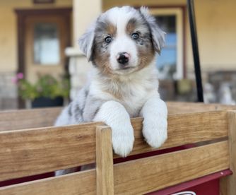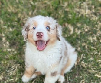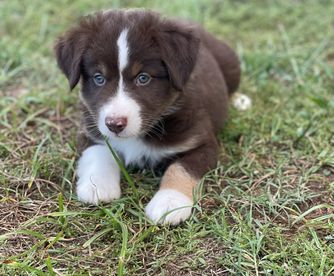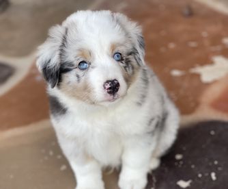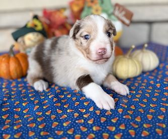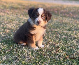 Our puppies include blue merle, black tri, red tri, and red merle. Colors will vary depending on the parent dogs.