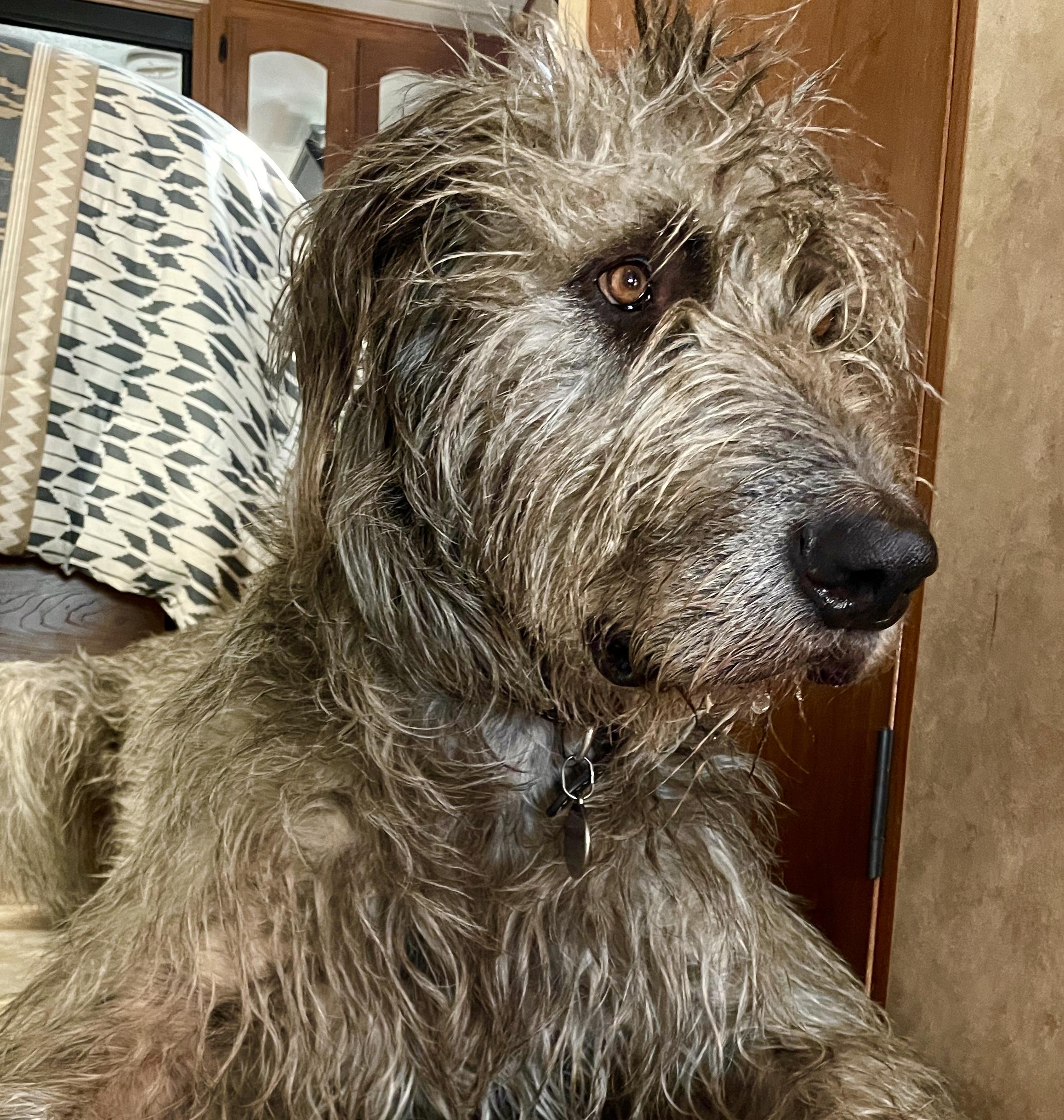 Cú is a male Irish Wolfhound. Carefully selected as a great representative of his breed, Stephanie decided to make him part of their program. Stephanie has passed Good Dog’s screening process, which involved a review of their breeding practices, environment, and the mental and physical health of their dogs.