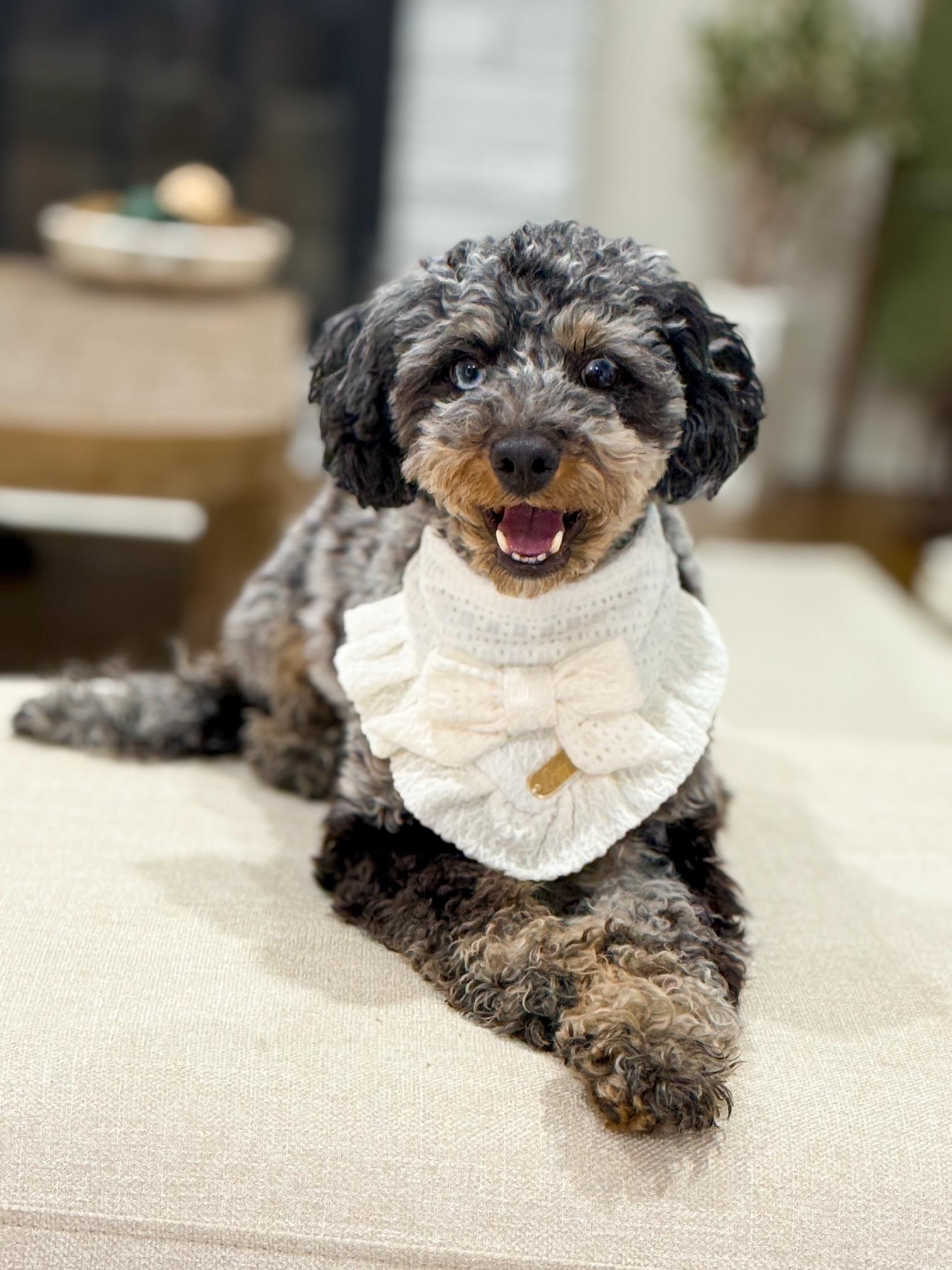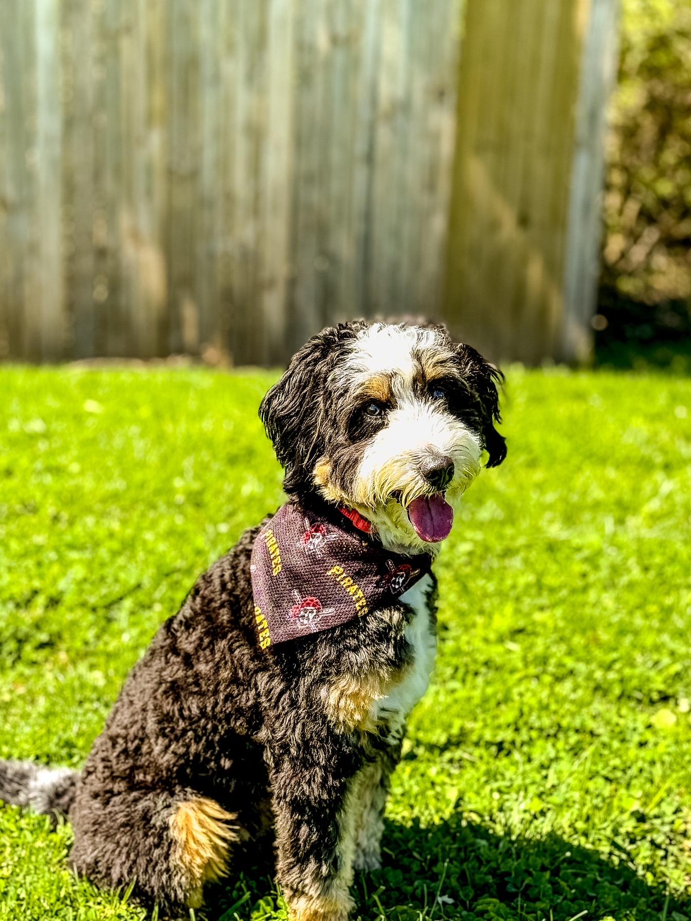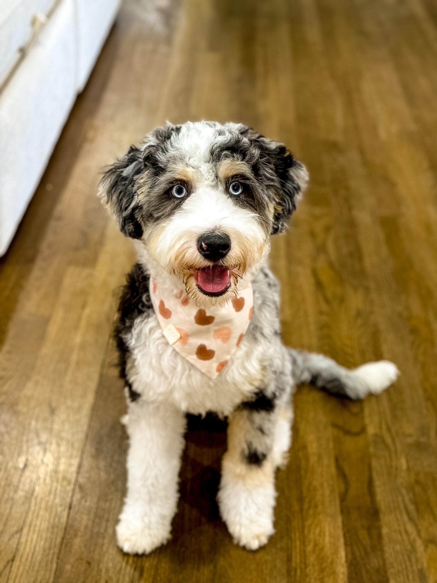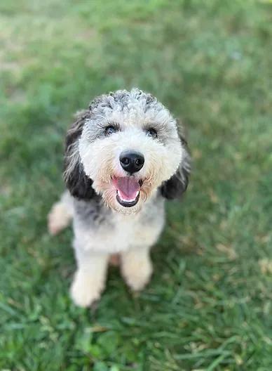 Our Bernedoodle puppies include black and white, tri-color, phantom, blue merle, and merle. Aussiedoodle puppies include blue merle, red merle, black phantom, black and white, black tri-color, and red tri-color. Colors will vary depending on the parent dogs.