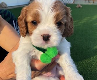 Our puppies are blenheim. Colors will vary depending on the parent dogs.