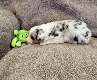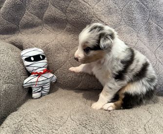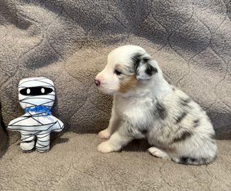Our puppies are blue merle. Colors will vary depending on the parent dogs.