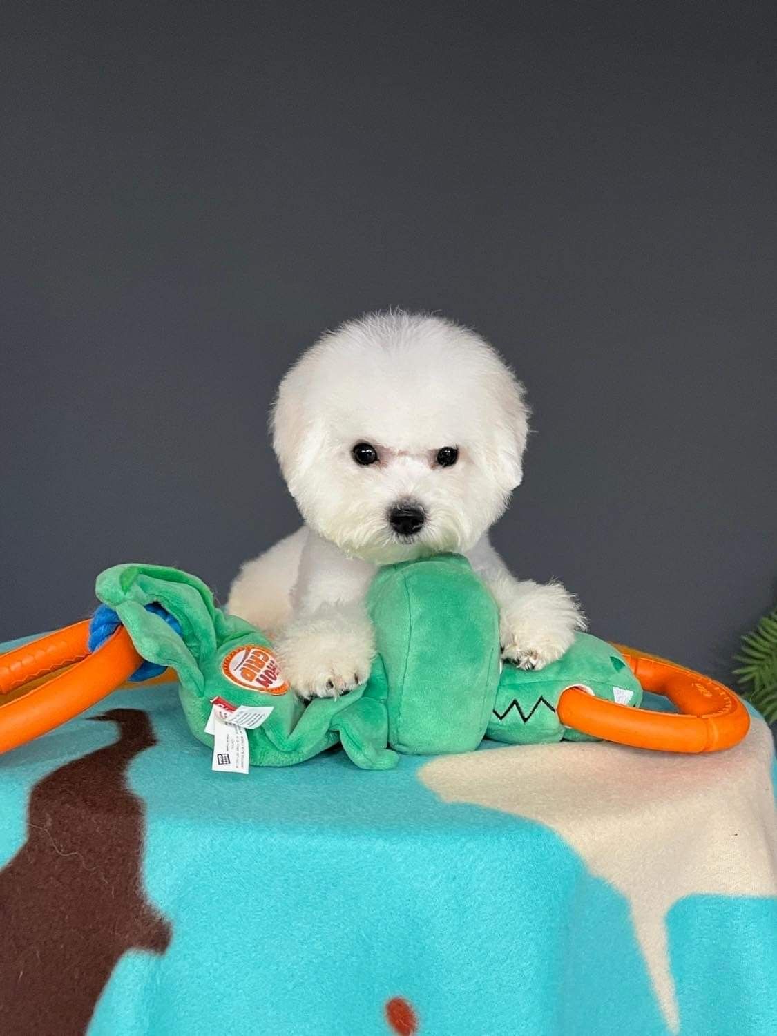 Magnum is a male Bichon Frise. Carefully selected as a great representative of his breed, Angela decided to make him part of their program. Angela has passed Good Dog’s screening process, which involved a review of their breeding practices, environment, and the mental and physical health of their dogs.