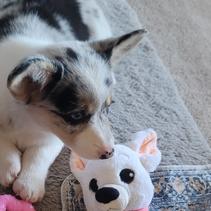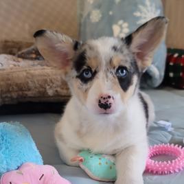 We had a wonderful experience working with Corinthea. We found our puppy on GoodDog when he was only about two weeks old. After we submitted the application, she reached out to me right away and stayed in touch the entire time until we brought our boy home. She sent pictures and videos, and the whole process was honestly so fun that we fell in love with our corgi long before we even met him. The pick up was easy and very welcoming. She gave us helpful tips and a goodie bag. Our pup himself is amazing. He did great in the car for the entire five hour drive and he has been social and snuggly with everyone in the family. He settled in at home right away. You can see the difference when a puppy comes from a loving home instead of a large kennel. He is clearly well socialized and very happy.