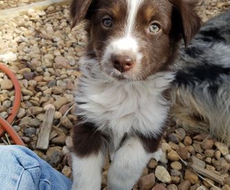 Our puppies include blue merle and red merle. Colors will vary depending on the parent dogs.