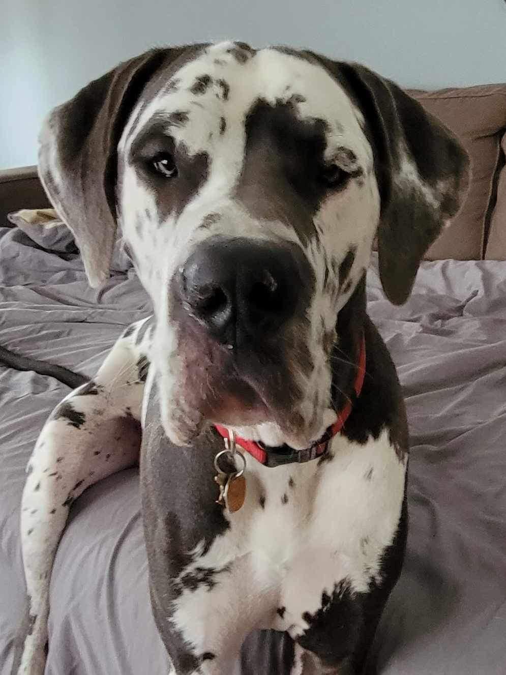 Negan is a male Great Dane. Carefully selected as a great representative of his breed, Sarah decided to make him part of their program. Sarah has passed Good Dog’s screening process, which involved a review of their breeding practices, environment, and the mental and physical health of their dogs.