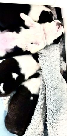 Our puppies are black brindle and white. Colors will vary depending on the parent dogs.