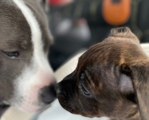 I'm Todd & Rachel W., the breeder behind Wheeler's Staffys located in Austin, TX. We love this breed! Our puppies are bred, raised and nurtured in-home to produce happy, healthy, amazing family companions! Our dogs have brought so much happiness to us- we want to produce healthy SBTs that can bring other people joy too. We aim to find loving families for all our pups!