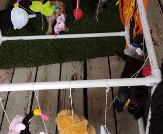 A goody bag containing food, collar, leash, blanket, and toy with Mom and siblings smell.