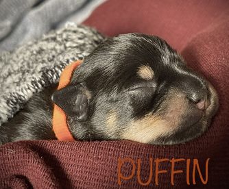 Our puppies are black and silver. Colors will vary depending on the parent dogs.