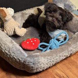 “Aaron has been very helpful and responsive to any questions I had about the breed and willing to travel to meet if needed. I would highly recommend Whiskey Meadows Miniature Schnauzer if you are looking to get a Schnauzer. They breed top quality Schnauzer puppies and the best colors. There puppies are so smart, heathy, and loving. I never had a puppy this easy going it has been a breeze with my lil guy Bruno(York).