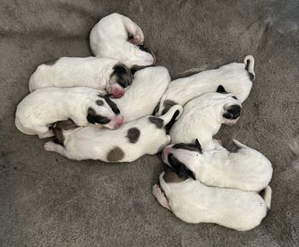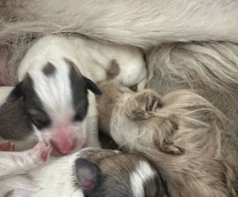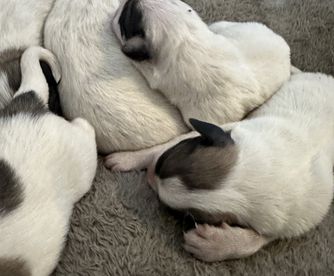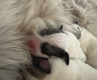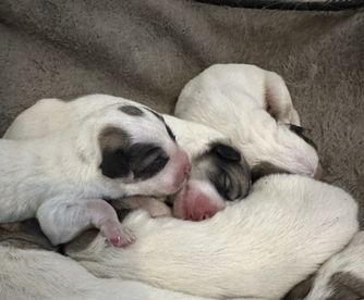Our puppies include white and badger and white. Colors will vary depending on the parent dogs.