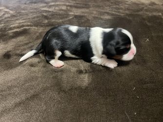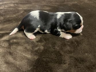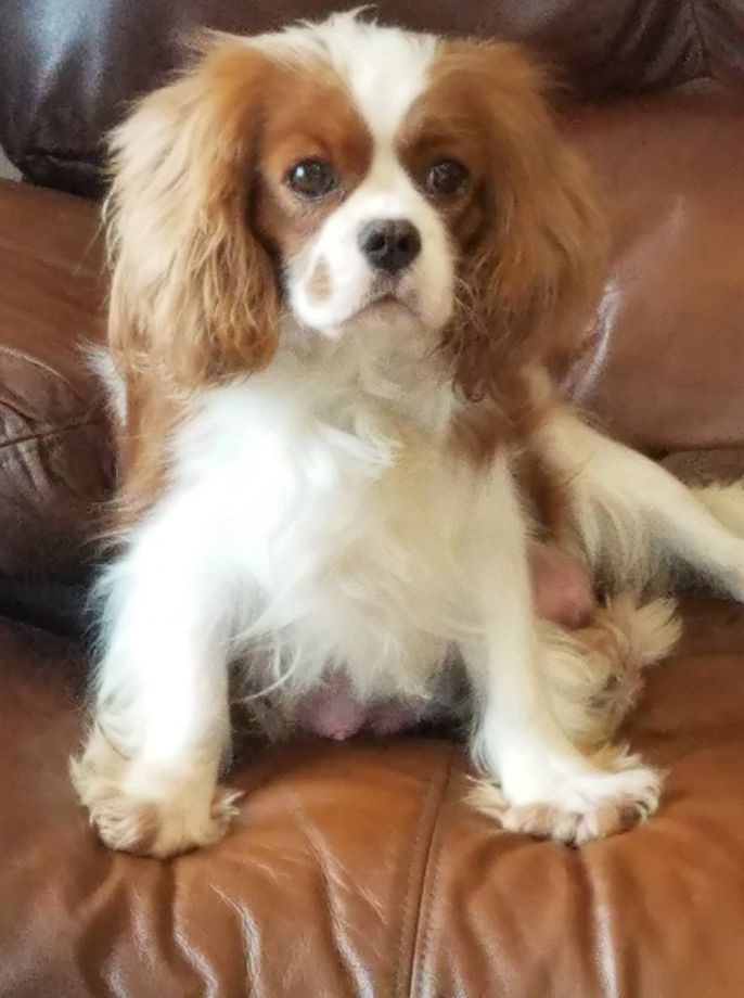 Eve has a beautiful cavalier head and soft, large round inquisitive eyes that melt your heart. You can literally see the love drip from her eyes when she looks at you. Her puppies are proving to have the classic cavalier personalities and are smart. She has the best babies for pet/therapy home companions. Her puppies train easy and excel at obedience.