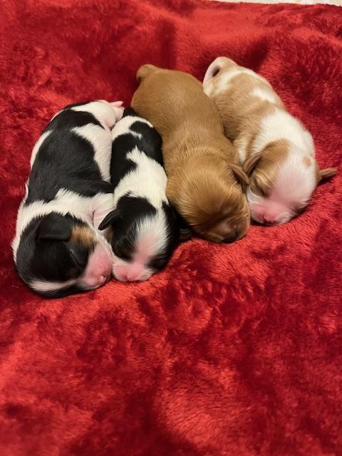 Our puppies include blenheim, tri-color, and black and tan. Colors will vary depending on the parent dogs.