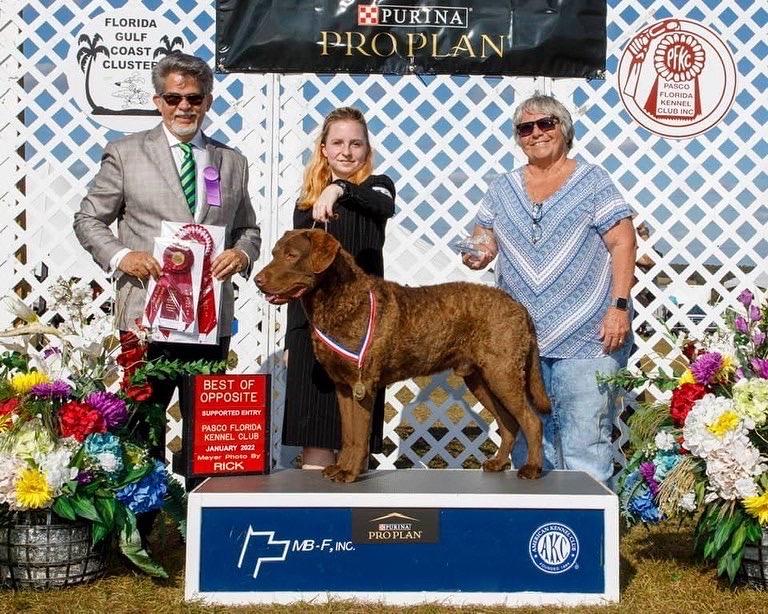 I'm Karen B., the breeder behind Whispering Oak Chesapeakes located in North Port, FL. Our goal as a Hobby Breeder is producing a versatile, well-rounded dog that will excel in the field, show ring, and importantly as a member of the family. Having litters once every 2-3 years, we are dedicated to the health and well-being of the Chesapeake Bay Retriever. We follow the American Chesapeake Club's code of ethics.
