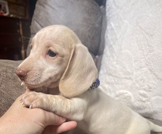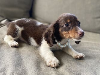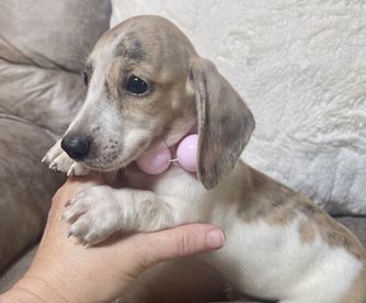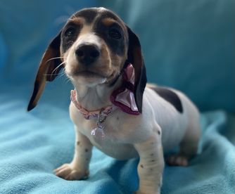 Our Dachshund puppies include piebald, cream, black and tan, blue and tan, and dapple. Colors will vary depending on the parent dogs.