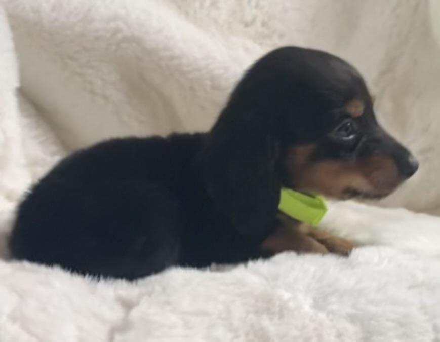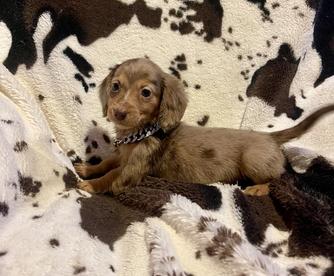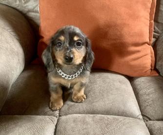 Dachshund puppies have longhaired coats. Coat types may vary depending on the parent dogs.