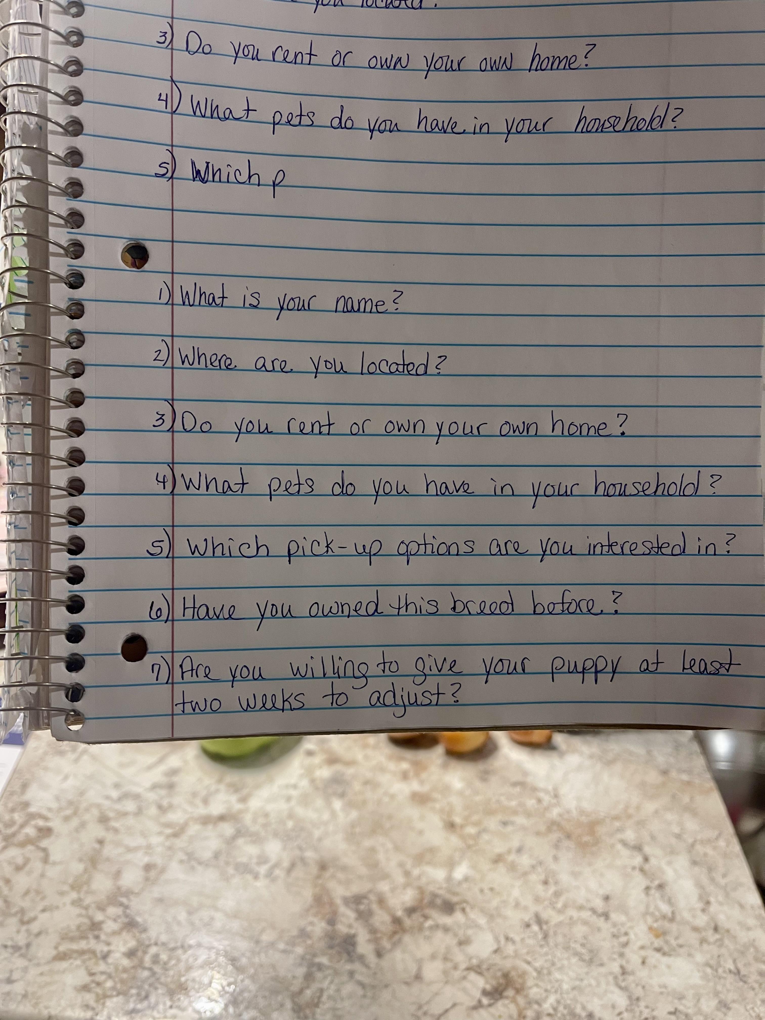 “The price includes puppy food, a blanket, treats, toys, pee pads, vaccine record and a copy of the health guarantee. A non-refundable deposit is required to hold a puppy.”
