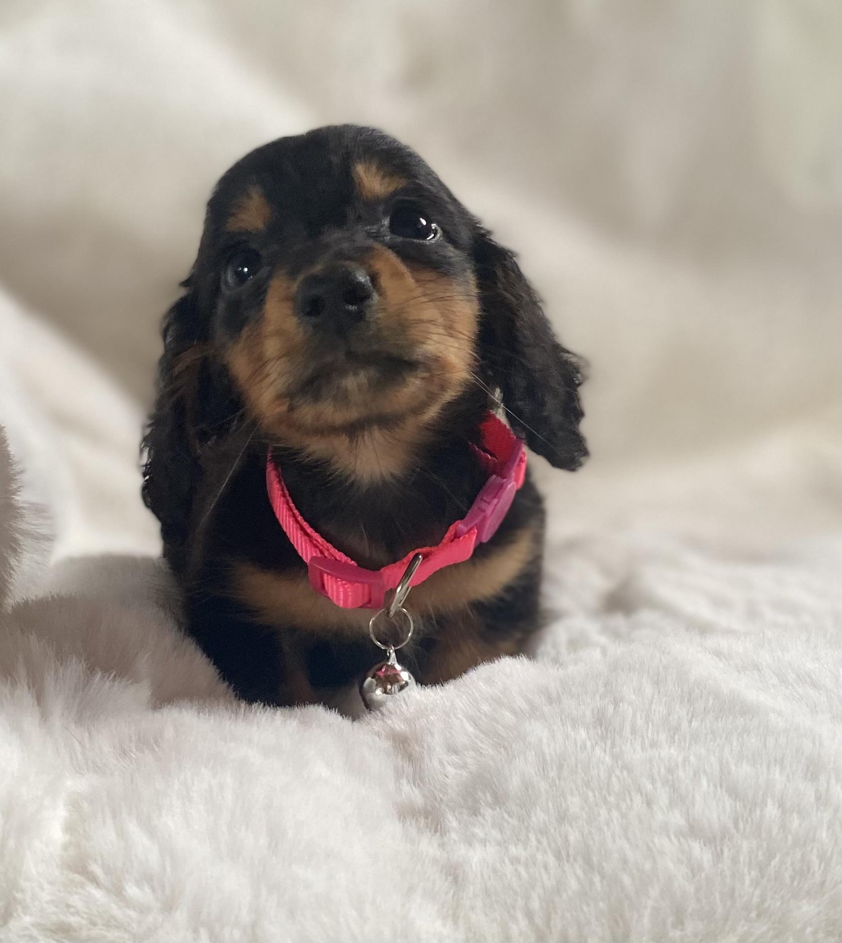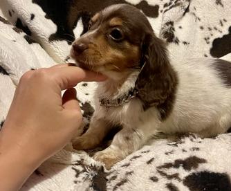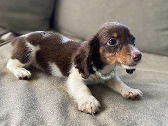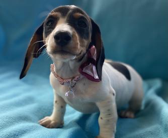 Dachshund puppies include piebald, cream, black and tan, blue and tan, and dapple. Colors will vary depending on the parent dogs.
