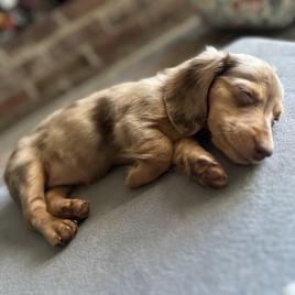 Mercedes is a female Dachshund. Carefully selected as a great representative of her breed, Whispering Pines decided to make her part of their program. Whispering Pines has passed Good Dog’s screening process, which involved a review of their breeding practices, environment, and the mental and physical health of their dogs.
