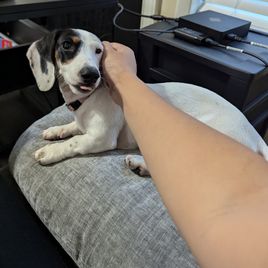 Puddin is a male Dachshund. Carefully selected as a great representative of his breed, Whispering Pines decided to make him part of their program. Whispering Pines has passed Good Dog’s screening process, which involved a review of their breeding practices, environment, and the mental and physical health of their dogs.
