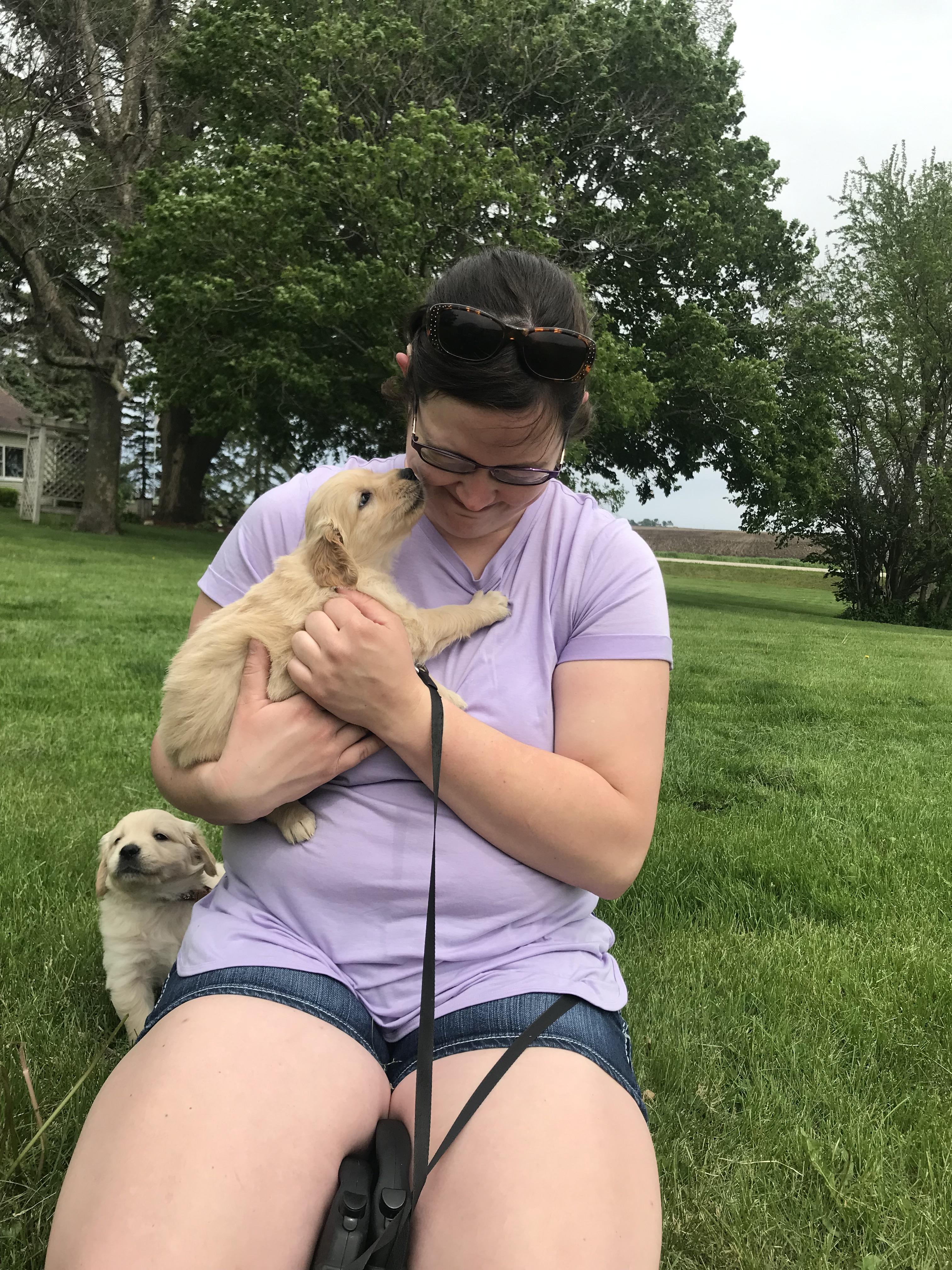We adore our golden retriever pup we bought from Renee. Her and her daughter were amazing about communicating with us before we picked up our girl, Sandy. The pick-up process went so smoothly, and they gave us some food, blanket, paperwork, etc. Sandy's transition to her home with us went very smoothly. We will definitely consider working with Renee again. We have recommended her to many other families!
