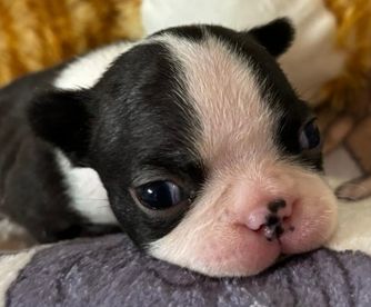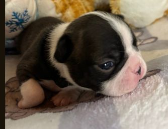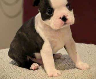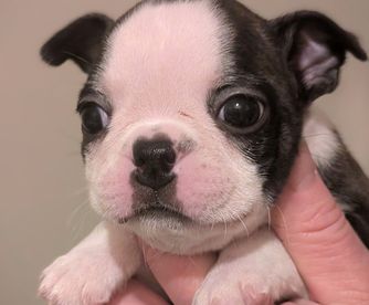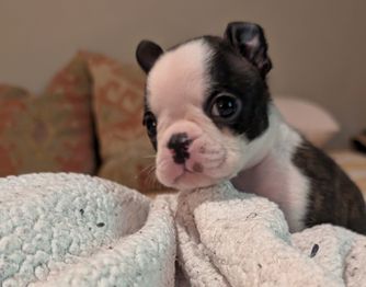 Our Boston Terrier puppies are black brindle and white. Colors will vary depending on the parent dogs.