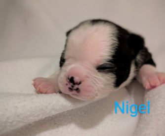 “My pups are of Standard color. Black and white or black brindle and white. Pups price is same for the boys and girls. Deposit is non refundable.”