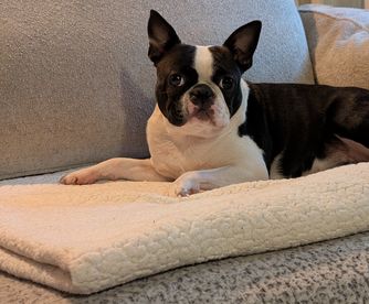 Topper is a male Boston Terrier. Carefully selected as a great representative of his breed, Lisa decided to make him part of their program. Lisa has passed Good Dog’s screening process, which involved a review of their breeding practices, environment, and the mental and physical health of their dogs.