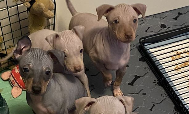 Our puppies have hairless coats. Coat types may vary depending on the parent dogs.