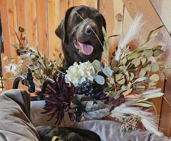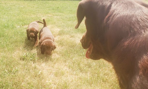 Whistling Wings Montana Rose 🌹 Tana has one of thw BEST Disposition on a labrador i have ever known. She is an incredibly talented girl proving herself out in the field at AKC Hunt tests and is very versatile will hunt upland along this waterfowl and pick up a shed antler. Tana lives on the Ranch and loves helping out with chores and riding in the tractor. She also is an outstanding service dog, gets to go visit many residents at the nursing home bringing joy to all she meets. I can't say enough about my sweet girl. AKC registered has two junior Hunt test passes Health Clearances are in order