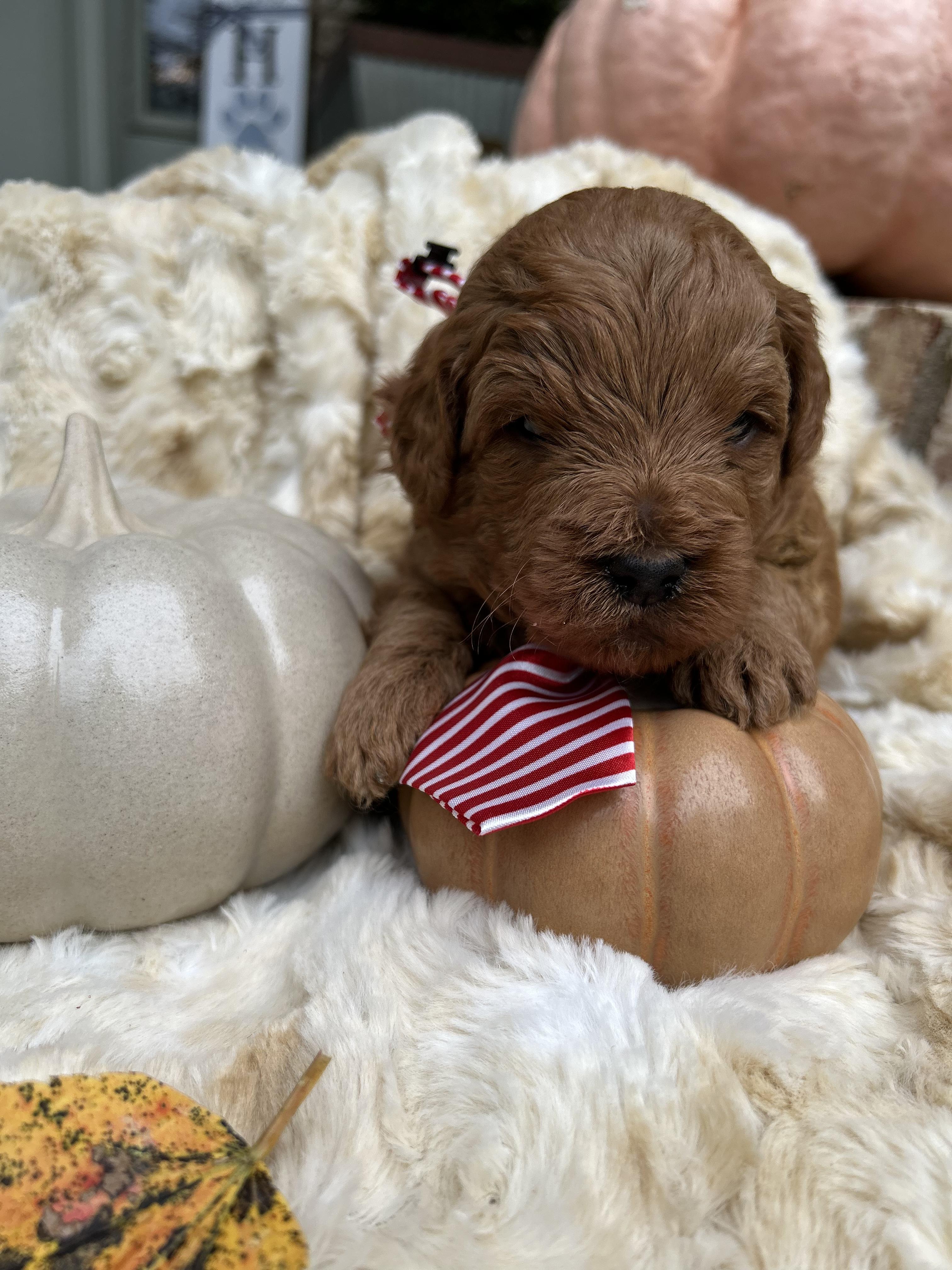 Lucy is a female Goldendoodle. Carefully selected as a great representative of her breed, Regina decided to make her part of their program. Regina has passed Good Dog’s screening process, which involved a review of their breeding practices, environment, and the mental and physical health of their dogs.