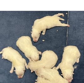 The puppies are doing great and getting ready to open their eyes. In fact, their little noses are starting to turn black. They are strong, healthy and beautiful puppies!