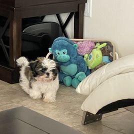 I have loved having Sully BamBam home for the past 3 weeks. He has such a cuddle bug personality with me. White Sands Shih Tzu’s was very friendly and professional and allowed us more than enough time in her home with the puppies so we could get comfortable with the puppy and they could as well. She was very informative and offered ongoing communication whenever needed regarding Sully’s needs as he grows.