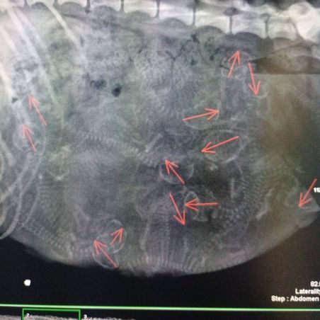 We have confirmed puppies! Each arrow shows a puppy 🐩🐩 Due any day now! We still have 5 spots open to reserve your puppy!